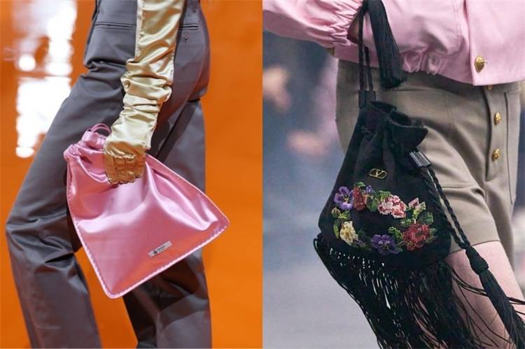 在小包领域,自带晚装氛围的抽绳束口包正悄然占据 C 位。从 Loewe 和 Miu Miu 用顶级皮革勾勒出的细腻轮廓,到 Prada 的缎面手袋以及 Valentino 的流苏设计,这些单品展现了极高的可塑性。无论是随性手拿还是挽于肘间,它们都能助你慵懒而优雅地穿梭于各类聚会,为整体造型注入恰到好处的浪漫与轻盈。